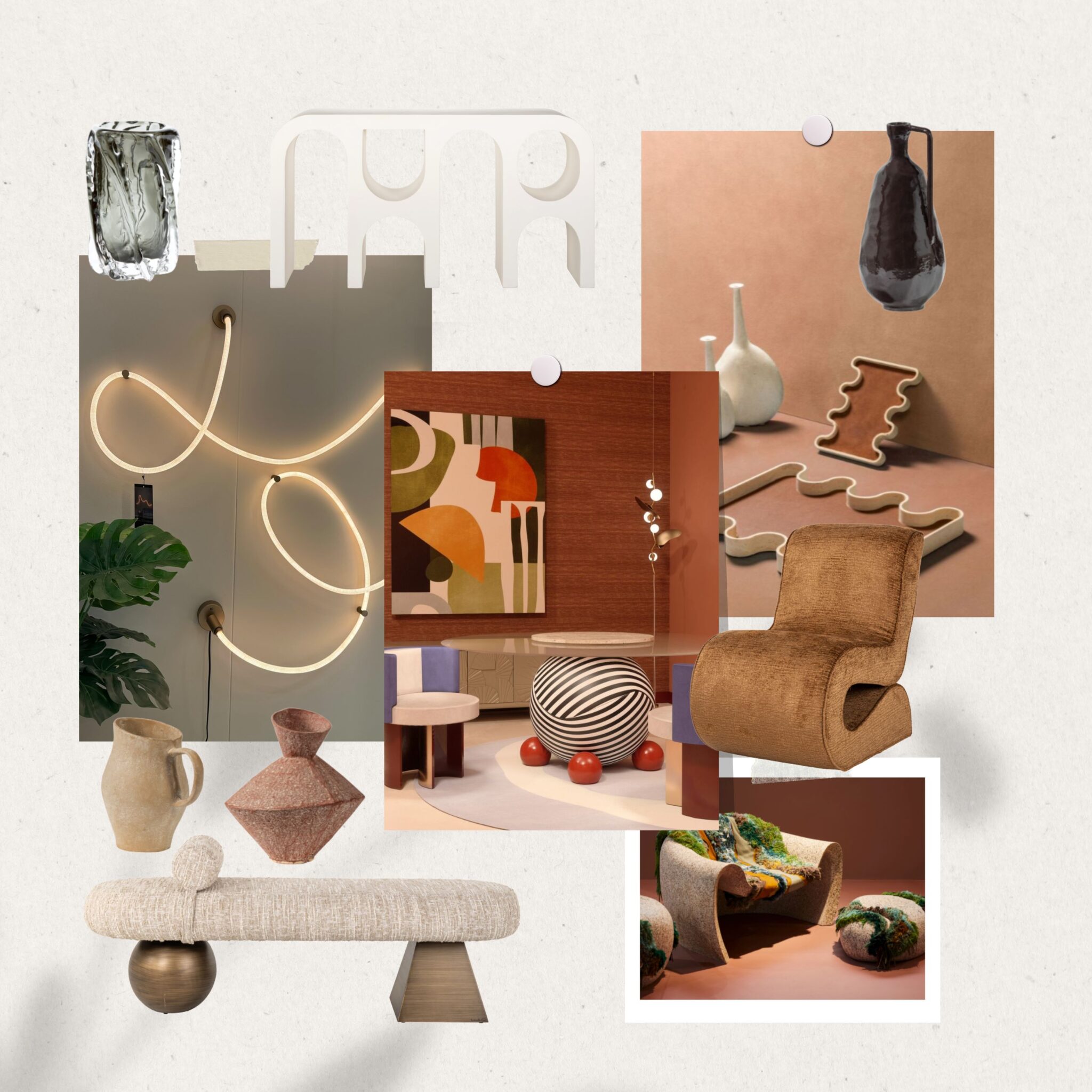 Alles wirkt weiterhin organisch, rund und erdverbunden. Beige, Braun und warme Naturtöne prägen die Farbwelten. Doch zugleich wird es persönlicher, kuratierter und gesammelter – Curated and Collected ist das Schlagwort. Wir sehen eine Abkehr vom strengen Minimalismus, stattdessen mehr Mindful Maximalism: Räume, die Geschichten erzählen, die Persönlichkeit zeigen, ohne überladen zu wirken.