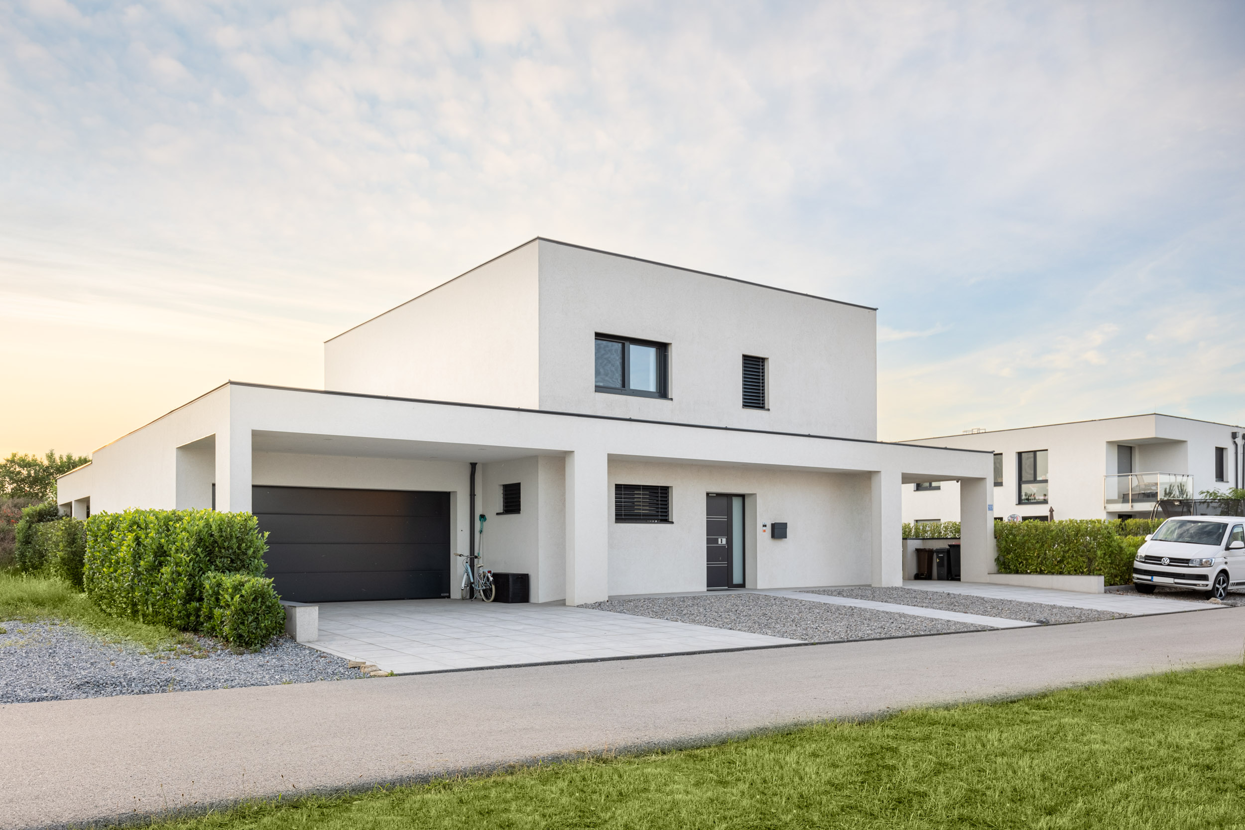 Helles, modernes Wohnen mit Blick ins Grün: Für dieses Haus entwickelten wir ein Interior-Konzept, das die klare Architektur aufnimmt und mit warmen Akzenten versieht.
